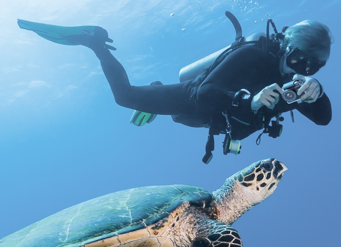 Many divers are used to capturing the underwater world from above or a head-up perspective, but these perspectives aren't always ideal for underwater shooting. For better results, try using a 4K underwater camera to shoot from below.